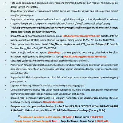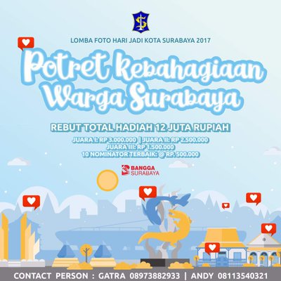 Yuk buruan ikutan lomba foto dalam rangka Hari Jadi Kota surabaya 2017 ya. Dapatkan hadiahnya!